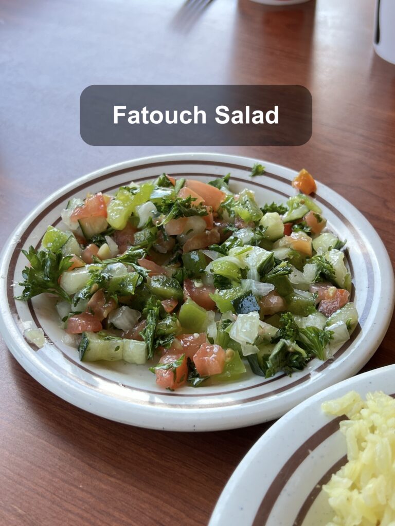 - Fatouch:有著大黃瓜丁、番茄丁、洋蔥丁等組成的沙拉