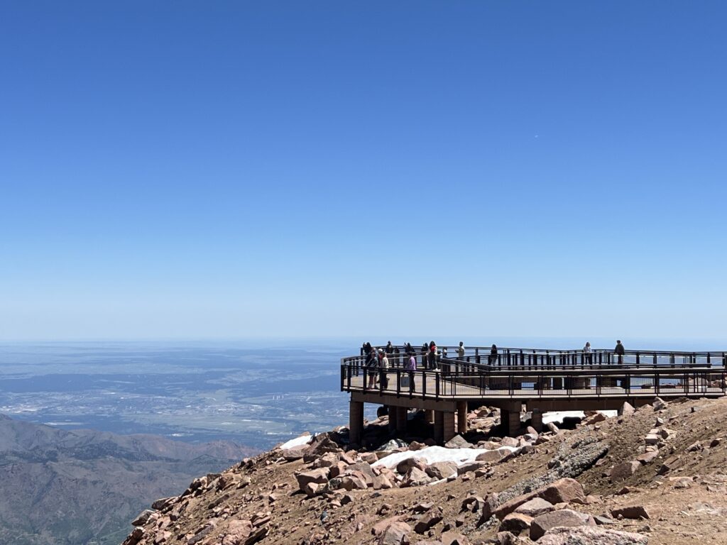 開車登頂需要上網預約入場券(Timely Entry),每天有數量限制價格為 2 美金一台車,在入口處(Pike Peak Tollgate)會再收取每人 18 美金的入場費,我們大約 10:30 抵達山底的入口,花約 1 小時抵達山頂!山頂的風景真的很壯麗,但因為空氣稀薄,走路有微微飄的感覺,建議大家不要在山頂激烈運動挑戰極限!