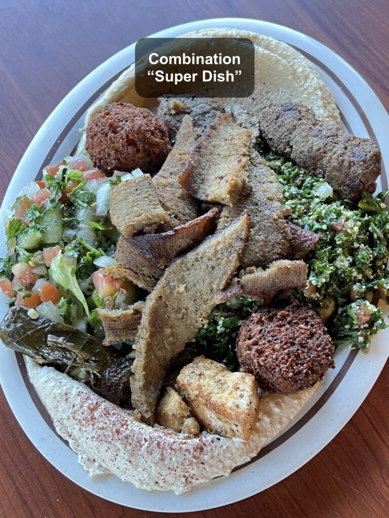 被羊腿震驚之後,我們決定再來吃一次 Jerusalem Restaurant(耶路撒冷餐廳)~ 因為來這間店用餐的機會不多了,加上我很想嚐遍菜單上所有菜色,因此點了 Combination “Super Dish”,這道菜幾乎涵蓋所有菜單上的品項,包含了