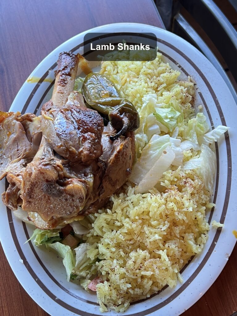在小紅書(RedNote)以及 Reddit (美國的 PTT),有許多推薦的丹佛餐廳,但大部分都是市區的高級餐廳,一餐動輒 50 – 100 美金,Jerusalem Restaurant(耶路撒冷餐廳)是我們找到相對平價的餐廳,餐廳以中東、地中海菜為主,餐點樣式齊全,在 Google Map 上有 4500+ 評價,平均 4.3 ⭐️,裝潢很有特色,餐點份量很大、很好吃,一餐一個人含稅、小費 20 美金!非常推薦大家去試試!
